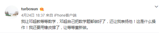 在日常生活中,这两个人经常互相生气。4月24日,孙力在一个帖子中说,他让邓超帮助他的儿子完成数学作业。没想到邓超不但没有听从皇后的指示,还完成了儿子的全部作业。这种操作,也要得到“娘娘”的称赞。网友们看到邓超如此孩子气,一个接一个地开玩笑说:“孙俪可能没有抚养三个孩子。”
