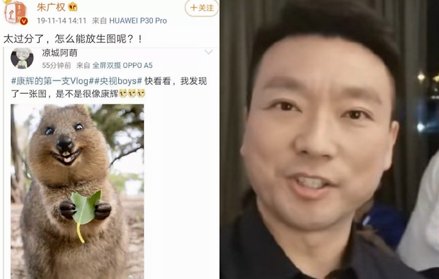 朱广权的艺术专家很大胆,转发了一张小松鼠的照片,说是康辉的照片。