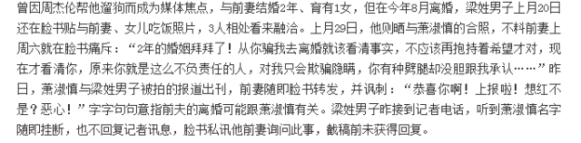 就在梁与的恋情曝光前一个月,他还在网上发布了与前妻和孩子的照片。