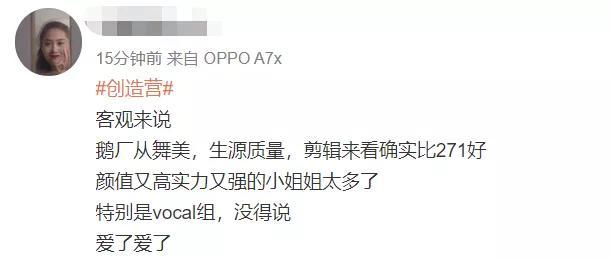 这一次,“创3”再次尝试让声乐首先出现,配合比赛制度的调整。最后,它获得了成功。关注鹅肉秀的网友和粉丝都被深深吸引,开始大声讨论这些宝贝。