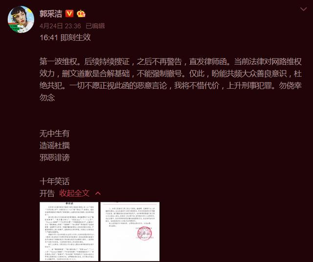 但这一次被撤出肯定给郭采洁带来了很多麻烦。郭采洁很快就准备收集证据来捍卫自己的权利,并将造谣者送上法庭。