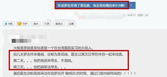 当时,有报道称罗志祥患有花椰菜疾病。罗志祥亲自带杨丞琳和郭采洁去检查,发现郭采洁把疾病传染给了自己。这种污水自然是不对的。罗志祥本人通过媒体发表了讲话,并发表了健康证明来驳斥这一谣言。