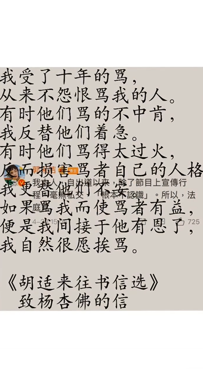 此外,郭采洁引用一句话说他已经被骂了十年,但他从不怨恨那些骂他的人。有时候,如果他不恰当地责骂他,他会为他们担心。有时候,如果他责骂他太多,他会损害他的人格。如果责骂自己对他们有好处,那么间接对他更有帮助,他也愿意被责骂。