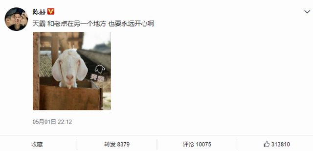 何老师在天霸的微博上留言,小狗。我想你在美丽的baa星一定也很开心吧?当我看到他们打招呼的时候,我想念老朋友们,“最后一句话是”小狗,谢谢你给我们带来的美丽。我们不再在一起,我们曾经拥有我们渴望的生活”,这更令人振奋。