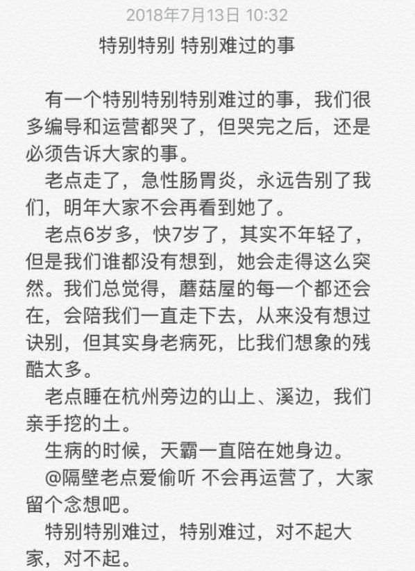据报道,这是蘑菇屋家族中第二只死亡的山羊。2018年,天霸的合作伙伴“老店”死于急性肠胃炎。