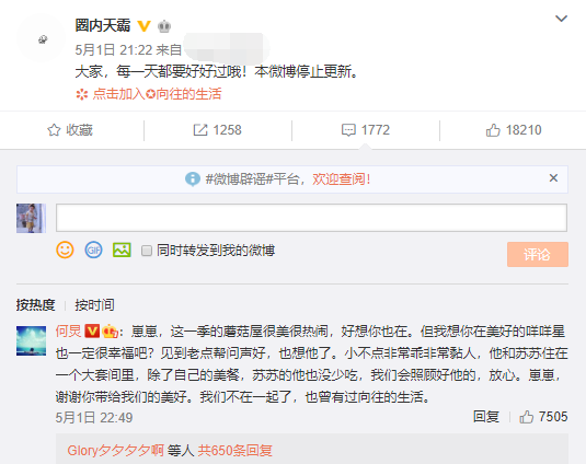 “天霸”微博随后发布了一条帖子,“每个人,每一天都变得更好”,并透露此后其微博将不会更新。
