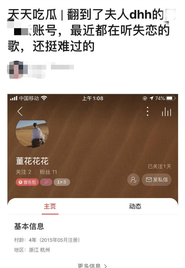 多亏了吃瓜者的努力,另一位网民最近黑掉了总统夫人的音乐账户,发现她最近听了失恋的情歌。