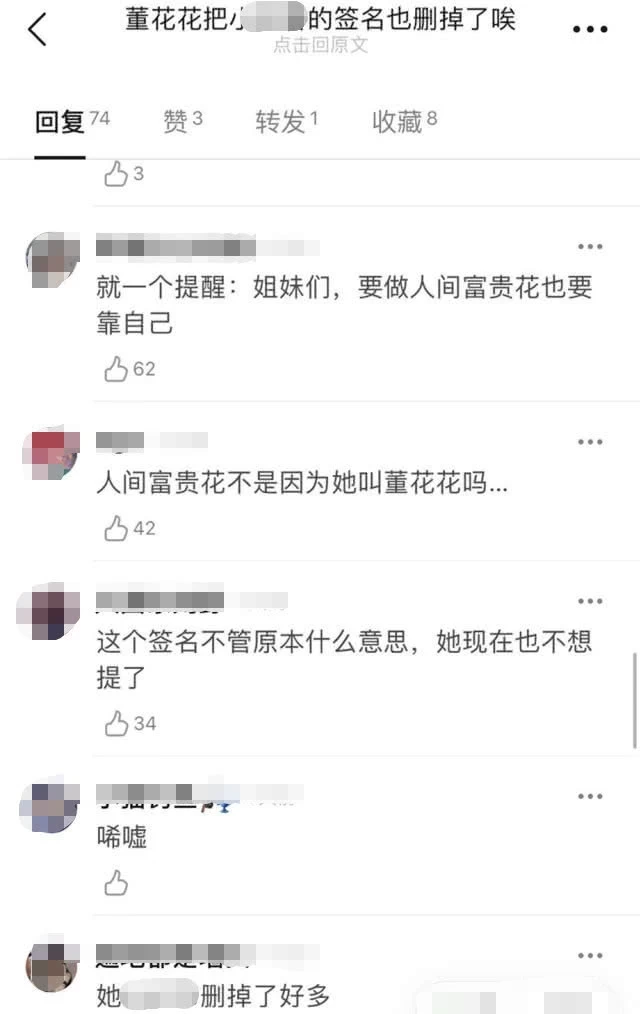 但是现在这个签名被删除了,一些网民分析是因为她和范姜真的想离婚,所以“世界上富贵之花”并不存在。