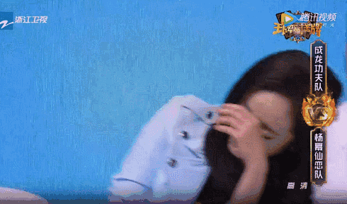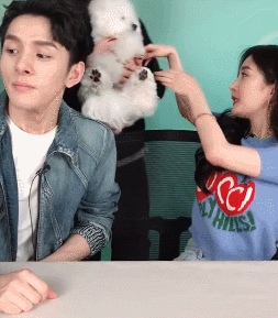 看到场面有点失控,迷你杨改变了话题,和狗玩了起来。齐家此时抬头45度来调整自己的情绪。
