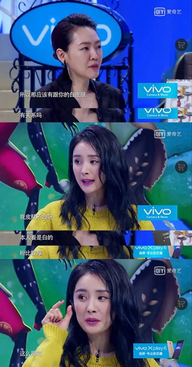 当节目进程提示到迷你杨推荐的化妆品,并讨论通常的粉底选择时,迷你杨说他不会特别追求白色,更喜欢天然基底液。