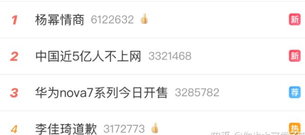 李佳琪道歉后不久,#迷你杨情商#突然高居榜首。