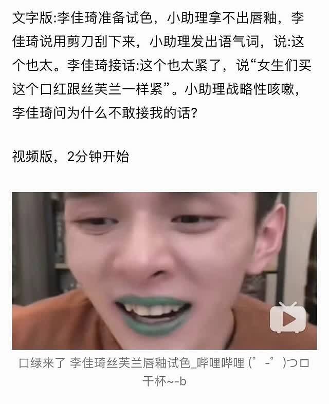 当丝芙兰唇膏被测试时,李佳琪说:这太紧了。女孩们会买和丝芙兰一样紧的口红。一旁的小助理不敢接话。