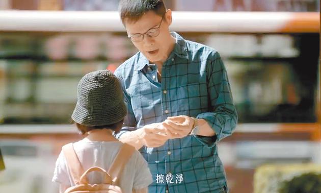 罗大佑在《伴侣》MV中帮助女儿喷洒酒精消毒双手