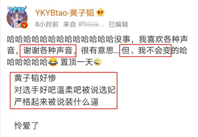 此外,在最后一个节目中,黄子涛的言行也受到网友质疑。在最后一个节目播出后,黄子涛甚至当面回复说,他喜欢各种声音,但他不会改变。他还设置了标杆。
