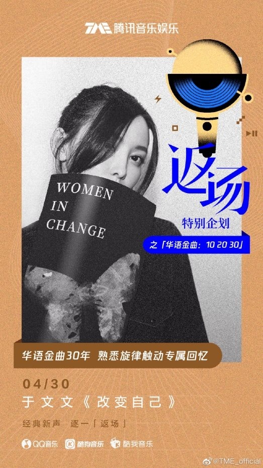 自从TME推出其特别节目“重返赛场”以来,该系列一直表现良好。无论是由游长静在“中国金曲:102030”项目中演唱的“氧气”,还是由王晰演唱的“流沙”,或者是由EP推出的“夏风”,这个特别的项目“一个夏天”在酷狗音乐排行榜上都取得了不错的成绩。4月30日,于文文的“改变你自己”,腾讯音乐娱乐特别项目“回归现场”的“中国金曲:10,20,30”一集,在酷狗音乐正式推出。跳出最初的轻快节奏的召唤,于文文用她非常容易辨认的摇滚声音自由而懒洋洋地抛出了她的态度:如果这个世界想让我改变自己,那就改变