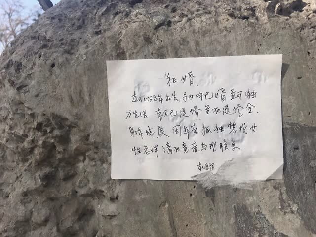 一天下午,在参观公园时,我碰巧发现了一则小广告。一开始,它是用更大的字体写的:“征婚”。
