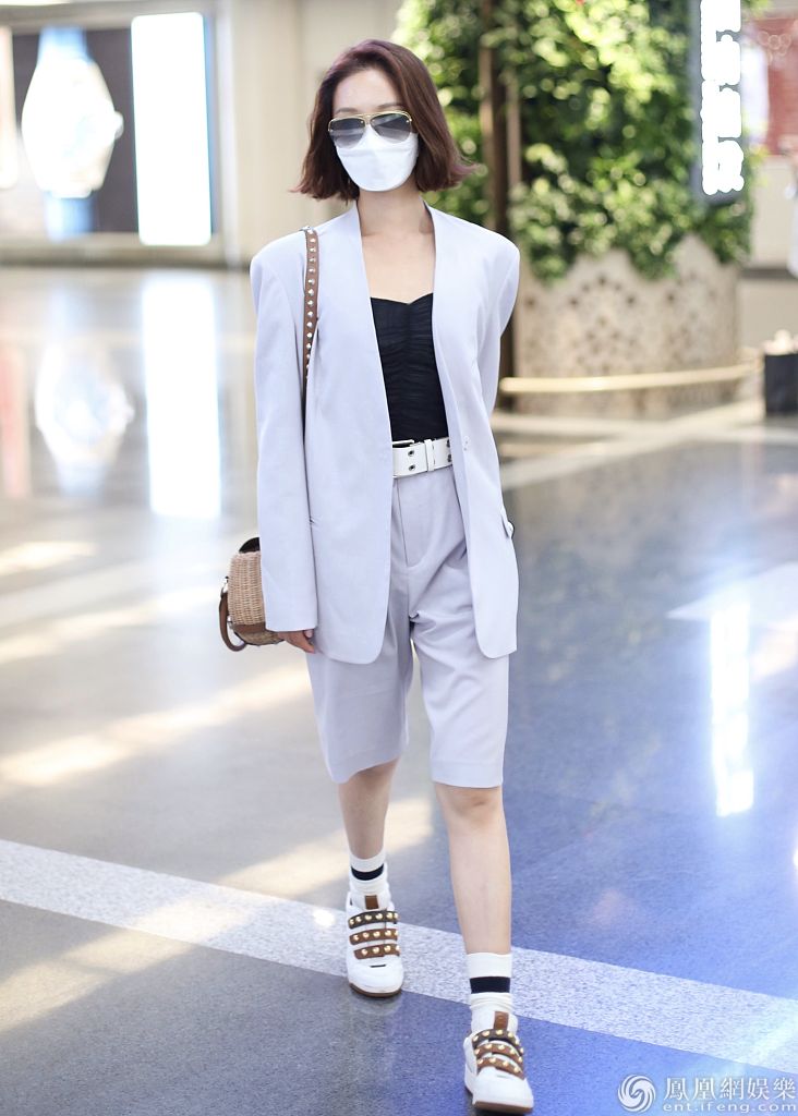 ”——2020年5月1日至2日,北京,兰英出现在机场。她留着短发,穿着浅色西装和黑色背心,半条裤子,看着镜子时显得非常咄咄逼人。蓝莹莹随意模仿走路姿势的表演就像在拍一部大电影。太标准