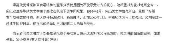 1999年底,有消息称关之琳和刘銮雄一起去了欧洲。两个月后,刘銮雄带着李嘉欣去了日本。(刘烨大忙)