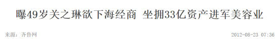 2012年,有消息称,尽管关之琳退出了娱乐圈,但他通过9年的房地产投机赚得了逾1亿港元的净利润。他身价33亿新台币,计划进入美容行业。(是真是假不得而知,但肯定有丰富的家庭背景。)