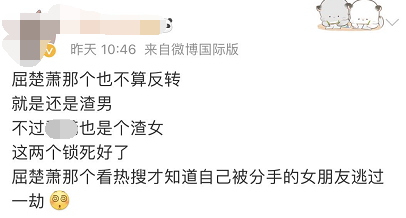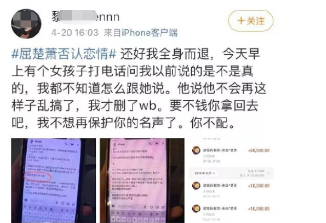 然而,最致命的一击来自屈的前女友,她在微博上指责屈对冷眼相待。该男子还要求她删除12万条帖子。