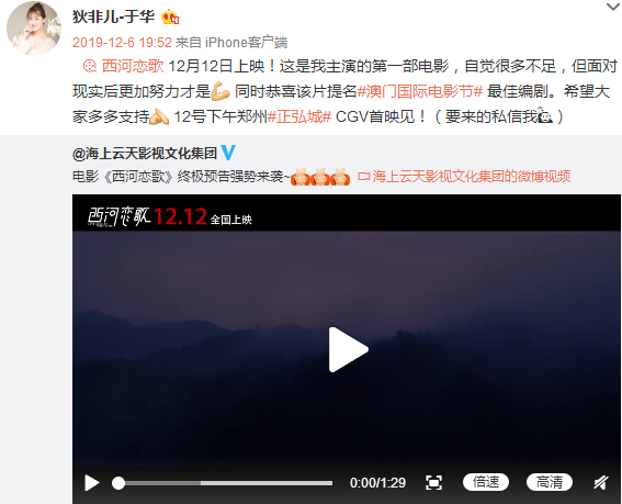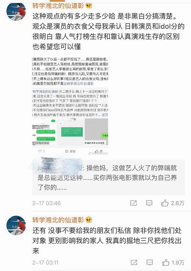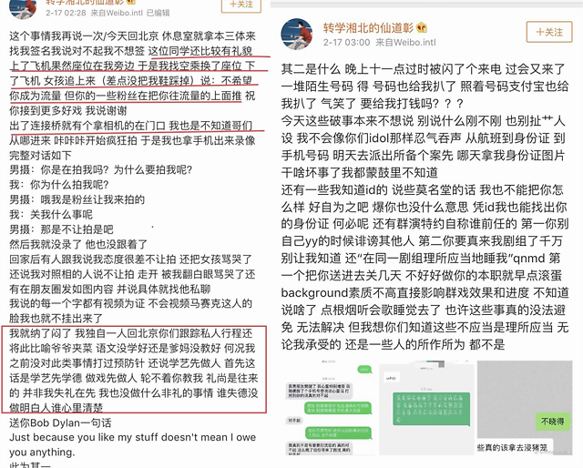 《漂泊的地球》发行后,瞿在微博上发表了一篇谴责私生的小帖子。
