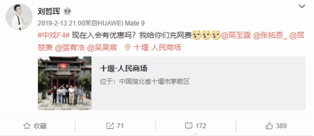 例如,中国戏曲中的屈、初晓、张明恩、高之庭、、张友浩等被称为“F4、蔡羽”。一些粉丝已经开始沿着墙从一个人身上破解这五个人的兄弟情谊,还创造了超级单词。