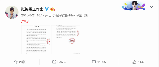 然而,这些网上质疑的声音在张明恩工作室发来律师的信后也停止了。