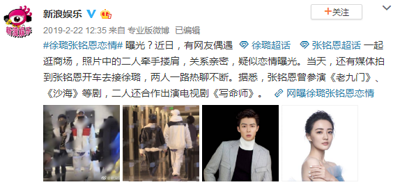 在此期间,两人也曾有过分手的传闻,但最近有媒体拍到张明恩拜访徐璐,而分手的传闻也随之破裂。