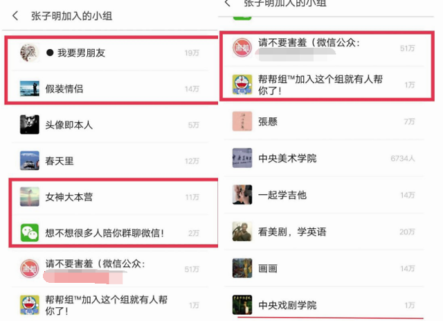 豆瓣的叙述也曝光了。有些人发现他关注大量的“友谊小组”,以及聊天和信圈相关的小组。