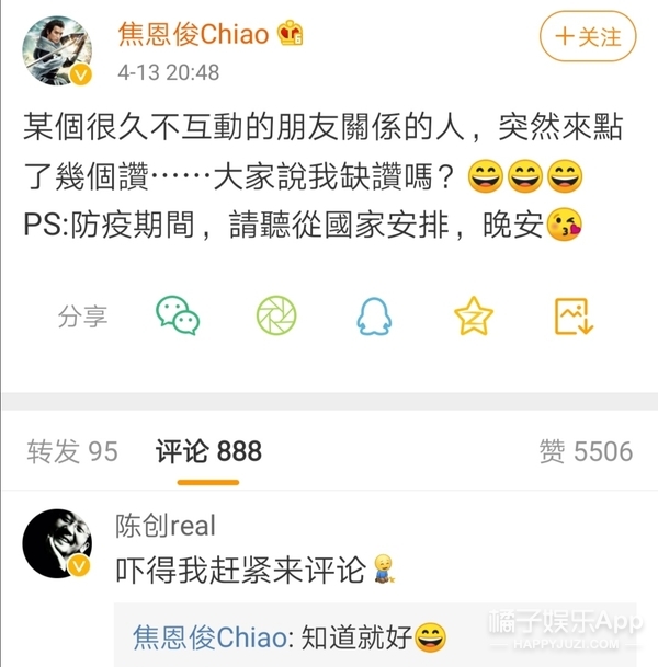 事实上,在读了他的微博后,我们可以发现陈创私下里是一个非常天真单纯的人。
