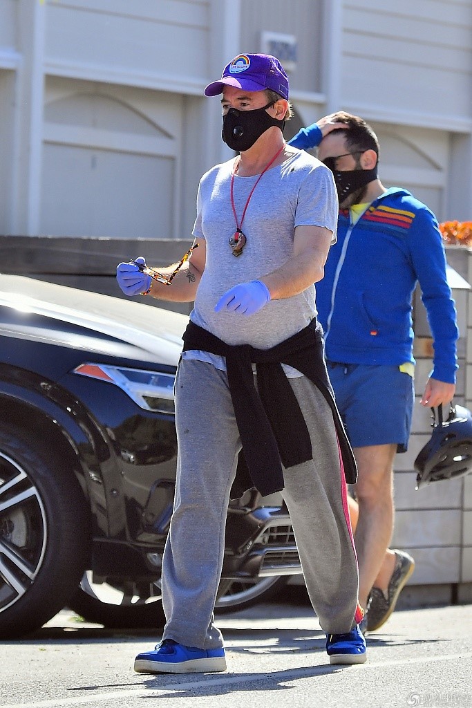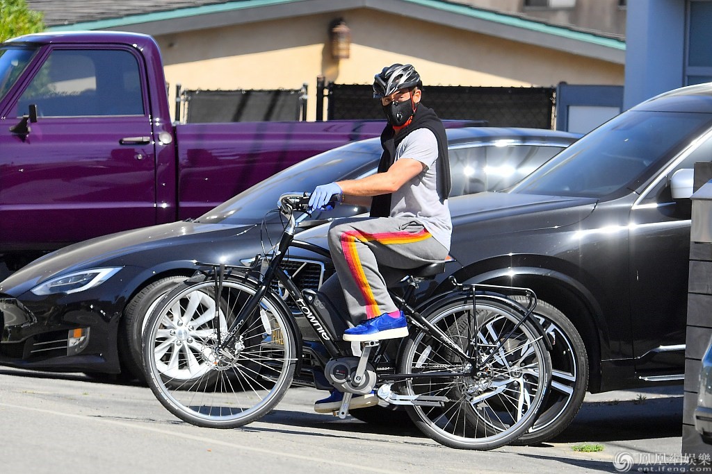 小罗伯特·唐尼穿着灰色休闲服,略胖。他骑在街上,不怕自己的肚子,让自己去。