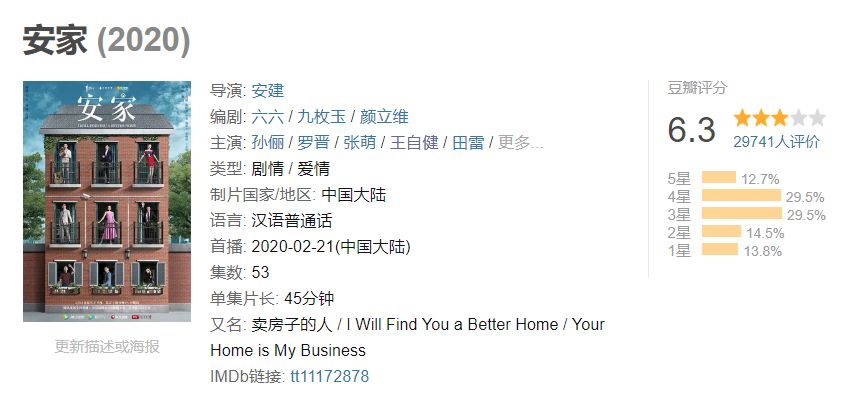 与之相比,《安家》的口碑虽整体好于《完美关系》,但同样难逃下滑厄运。已从豆瓣开分时的6.5分,跌至6.2分又上升至目前的6.3分。随着剧情发酵,房似锦身世曝光,加强版“樊胜美”上线,《安家》似乎还有“回温”的可能性。