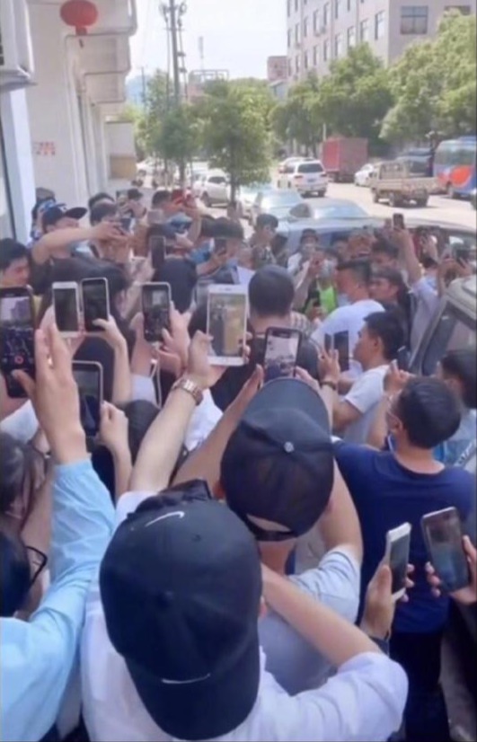 在伴随的照片中,我们可以看到几十个人拿着手机在酒店门口给艺术家拍照,不仅距离很密集,还没有戴口罩。郑铮说,在尊重他们工作的同时,他也希望得到尊重。不要蹲下来拍拍他们,不要打他们的脸,最重要的是戴上面具。