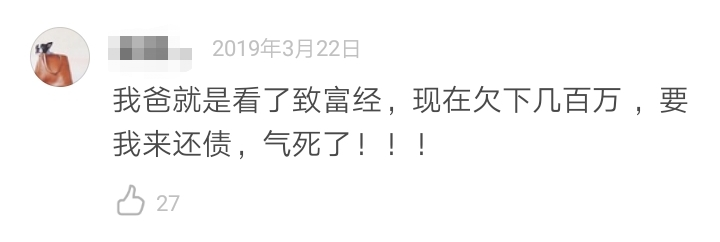 一些网民在看完节目后谈到了他父亲的惨痛教训,说他被其中一个故事所吸引,决定辞去工作去农村养鸡。结果,他没有赚到钱,欠了很多钱。
