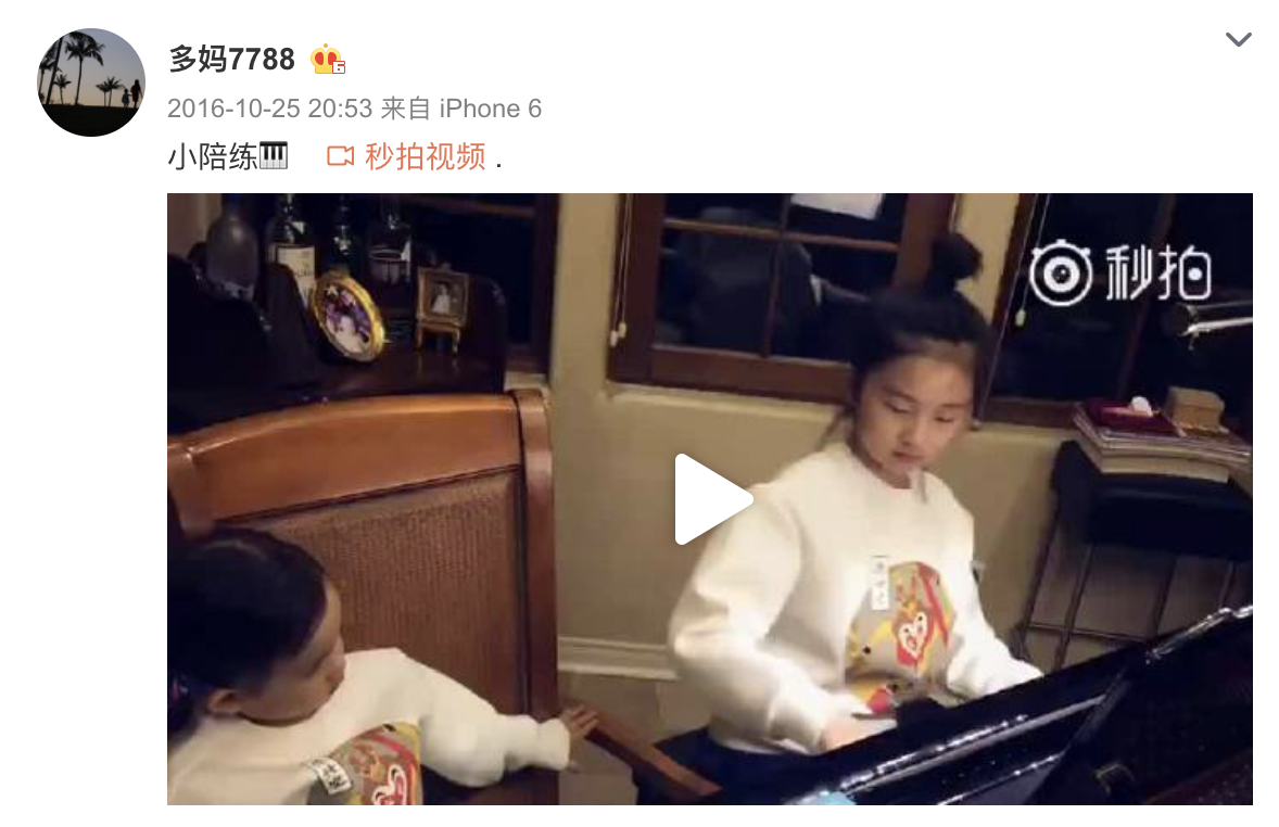 孙莉以前也多次播放过姐妹俩弹钢琴的视频。在之前的视频中,妹妹只是一个“小伙伴”来帮她翻乐谱。现在,她已经能够和姐姐在默契的配合下用四只手弹奏钢琴了。