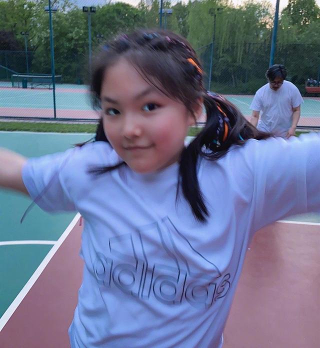 10岁的王诗龄已经长大了很多。她留着长长的直发,披着一条劈开的披肩。她闻起来像个小淑女。她穿着一件黑色t恤,手里拿着一件运动裤和一个羽毛球拍。她非常年轻,精力充沛。她被李湘“喂得很饱”。她的确很喜怒无常。她和她的狗一起运动,照片很可爱。
