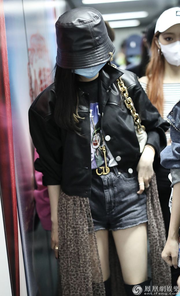 “——3——她戴着一顶黑色的钓鱼皮帽,一件黑色的潮t恤配一件黑色的短皮衣,牛仔热裤配长靴和大美腿,并在一名助手的陪同下出现在机场。