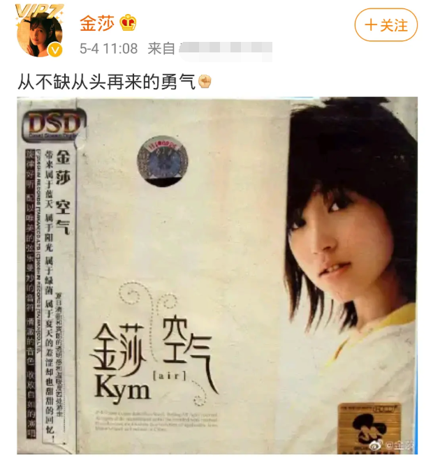 金莎在5月4日的一篇帖子中说,他“从不缺乏从头开始的勇气”。