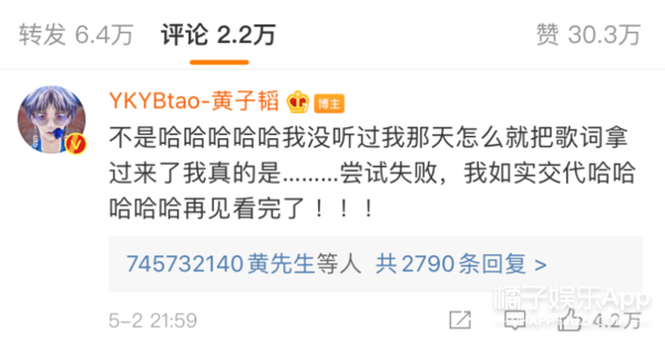 3.黄子涛的性格一直都是那么的率真,率真,率真。