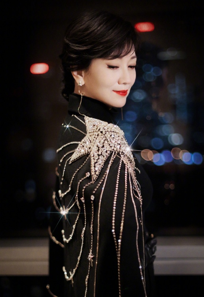 在照片中,赵雅芝穿着一件黑色镶钻斗篷,散发着浓郁的气息。
