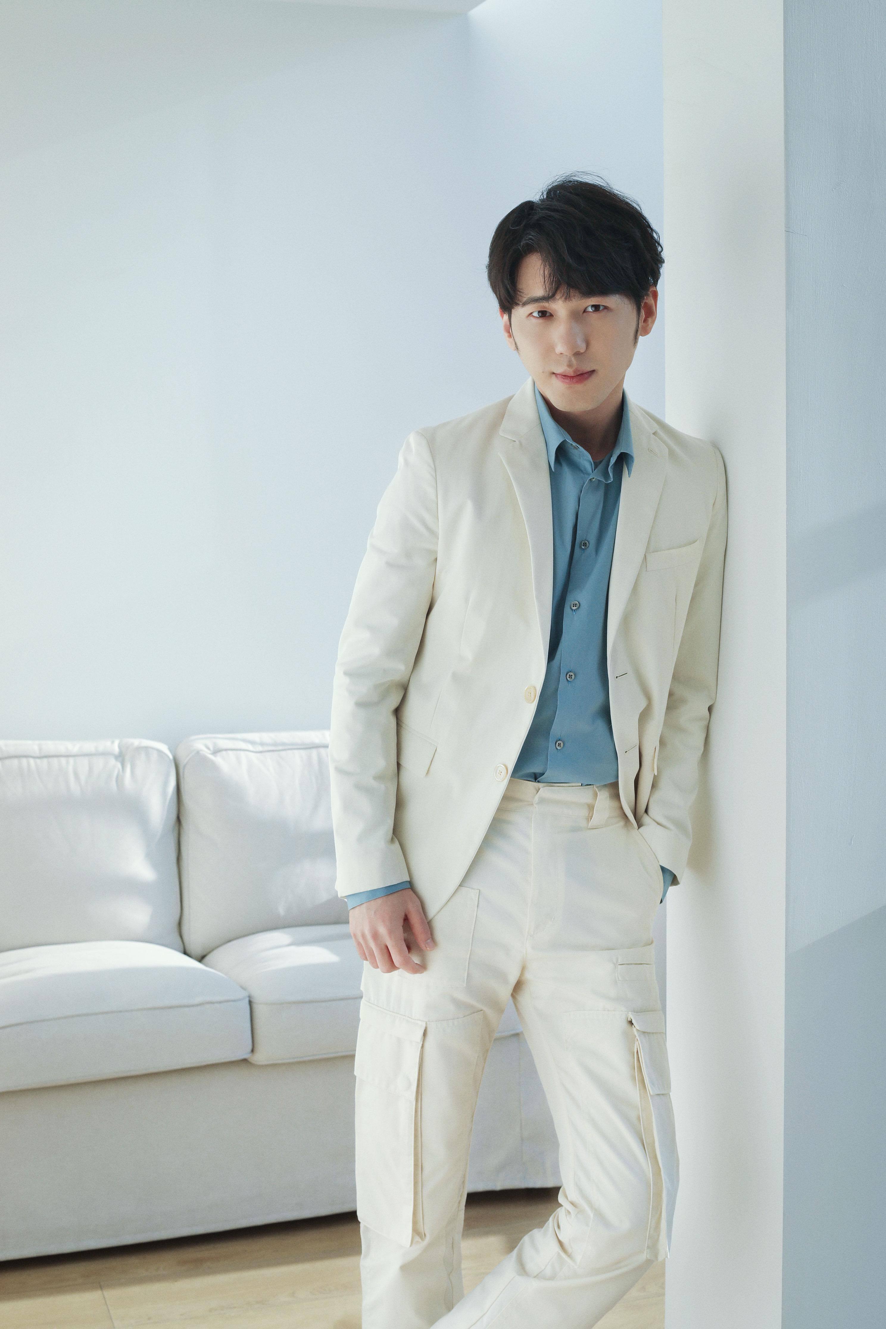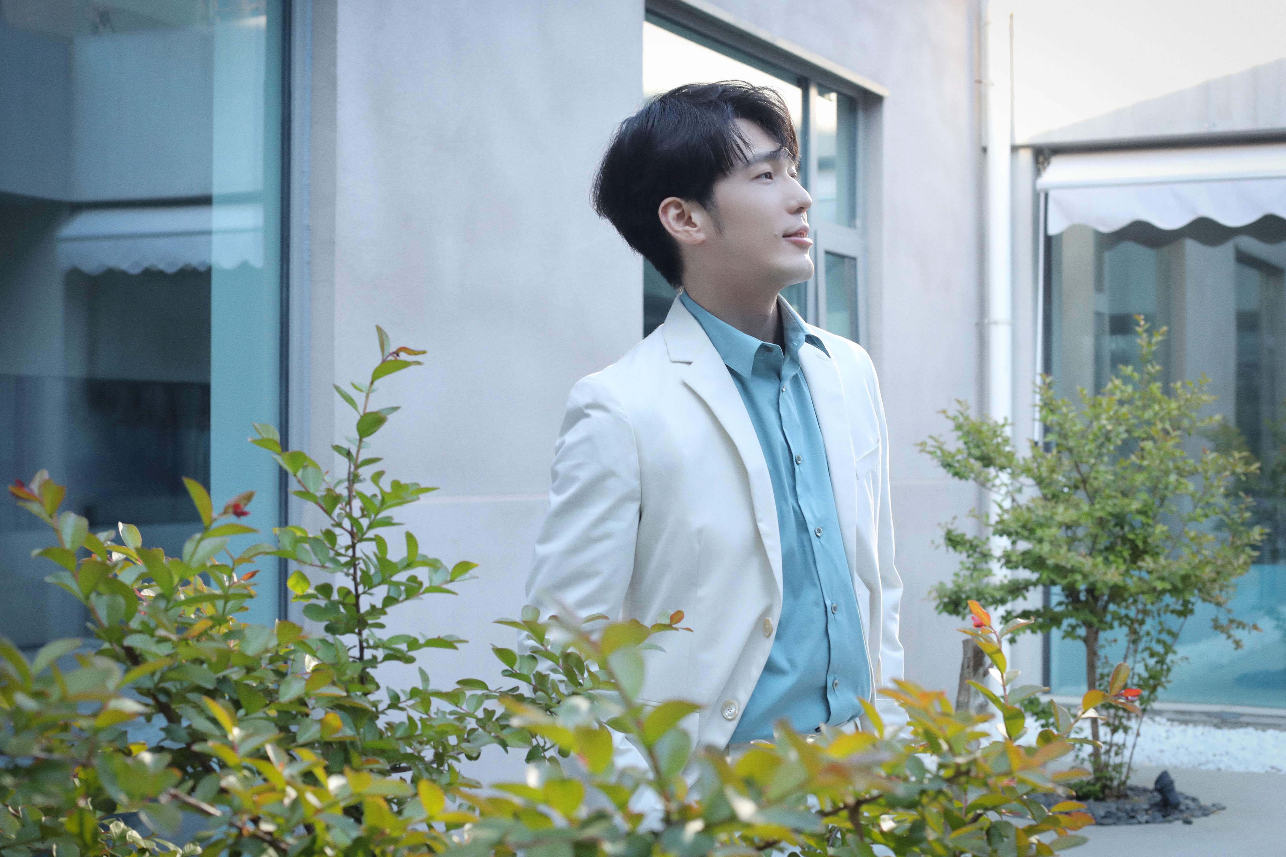 白宇穿了一套浅蓝色衬衫的白色西装,优雅而朴素,充满青春气息,向最美丽的逆行致敬。
