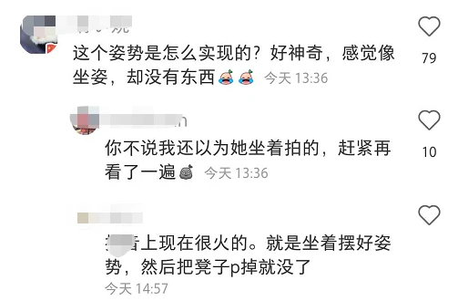网友看到照片后都表示震惊,纷纷探讨这样似坐非坐的照片是如何拍成的。