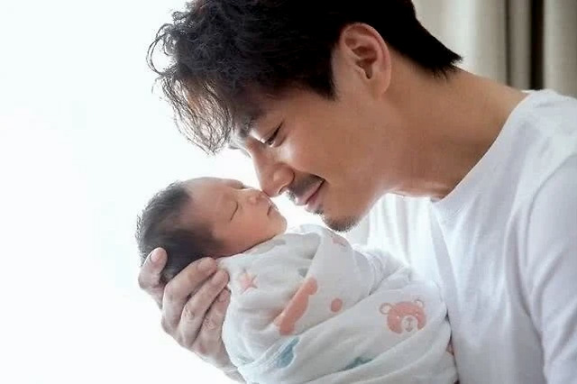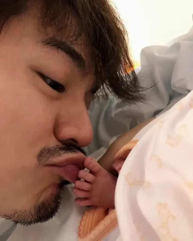 新爸爸罗仲谦也非常喜欢和女儿在一起。在照片中,他亲吻她的小脚。