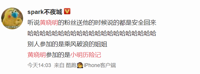段子说其他人参加了他们妹妹的冒险,黄晓明是小明的冒险。