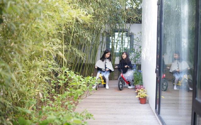 4月23日,赵子琪还分享了他的两个女儿在他的院子里骑自行车的一组照片。从照片上可以看出,两个女儿正骑着一辆黄色和一辆红色的两辆车,围着房子转,旁边有许多绿色的竹子。虽然网民只能看到一个角落,但不难想象庭院的大小。
