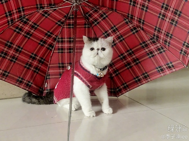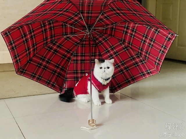 照片中,可爱的胖丫正躺在一把红色的雨伞下,有一个铃铛领和一件红色的小外套。她可爱的外表激起了网友们的评论:“精致的猫女”和“红色雨伞,好外国风格!”