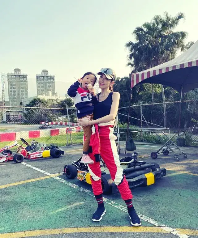 照片中陈若仪穿着赛车服,怀里抱着欧弟女儿超宠溺,看来真的非常喜欢女孩了。