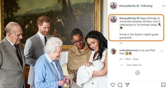 这位94岁的曾祖母的社交媒体账户率先上传照片,祝愿阿奇和米德一切顺利。蒙巴顿·温莎生日快乐,他指出阿奇是女王的第八个曾孙。此外,查尔斯王子和威廉·凯特的社交媒体也发布了老照片来祝贺阿奇的一岁生日。