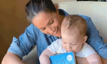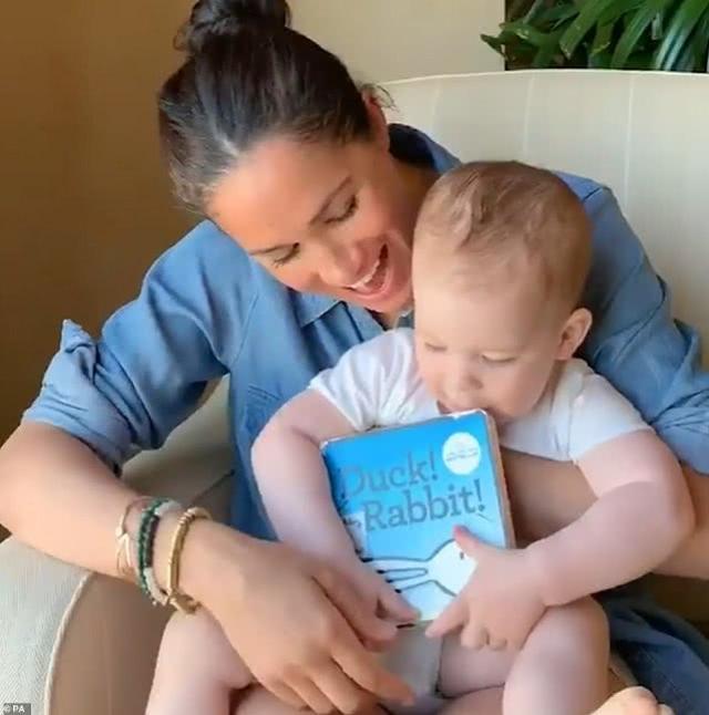 梅根给阿奇的图画书叫鸭子!兔子!鸭子!兔子!),作者是美国作家兼短片制作人艾米·米德多;克鲁斯和米德多。艾米·克洛斯·罗森塔尔告诉人们对同一件事的不同看法,并分析说梅根选择这本书是为了让她的儿子尽快理解这个论点并正确看待它。然而,只有1岁的阿奇显然不能很好地理解内容。他在母亲的怀里不停地扭动,甚至试图逃跑。当他安静下来时,他拿起书又咀嚼了一遍。他嘴里确实是个孩子。