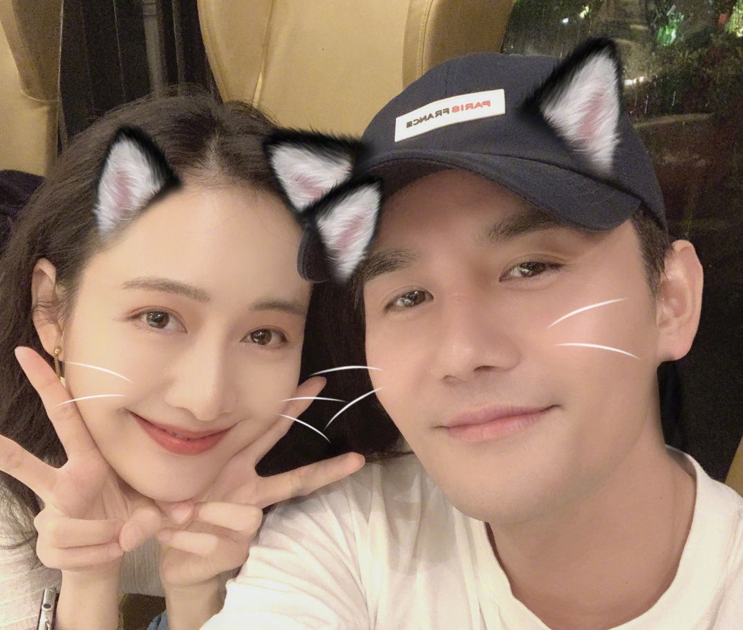 王鸥和王凯合影,猫咪滤镜下的两人十分可爱。
